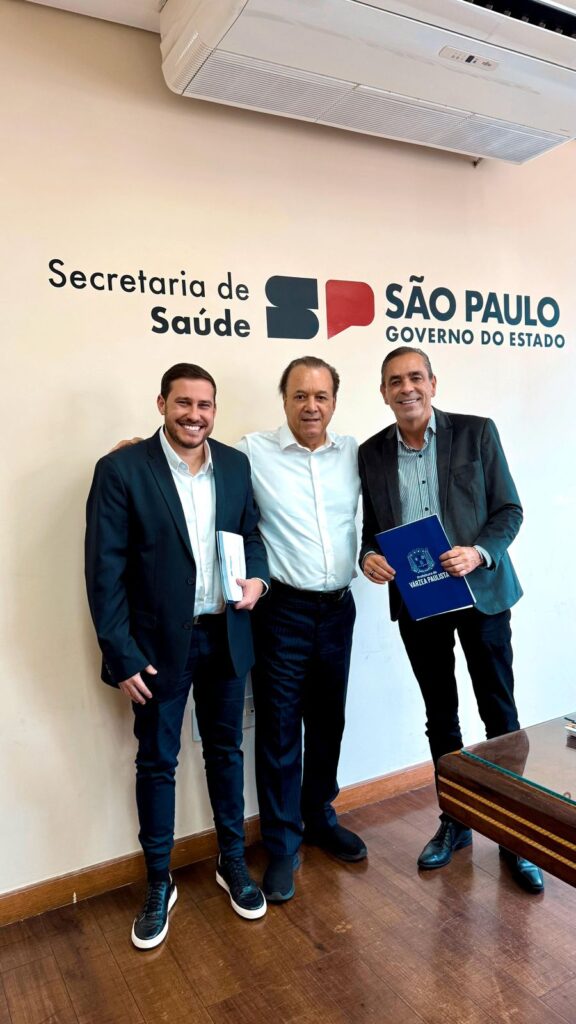 Em agenda oficial nesta quarta-feira (27), o prefeito Professor Rodolfo Braga e o vice-prefeito João Paulo de Souza se reuniram com o secretário de Estado da Saúde, Eleuses Paiva, para avançar no processo de aquisição dos equipamentos do novo Hospital e Maternidade de Várzea Paulista. A reunião também contou com a presença da gestora municipal de Saúde, Maria Malta.