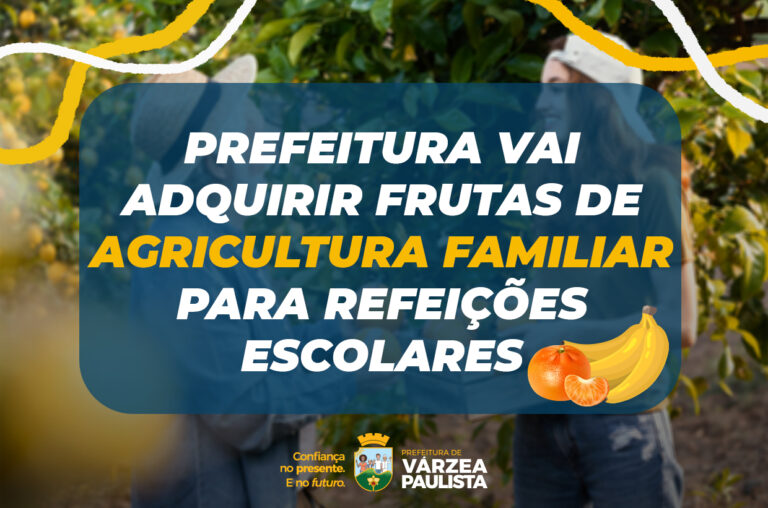 A Prefeitura de Várzea Paulista está com um chamamento público aberto para adquirir frutas in natura fornecidas por agricultores familiares. Os gêneros alimentícios atenderão alunos da Rede Municipal de Ensino.