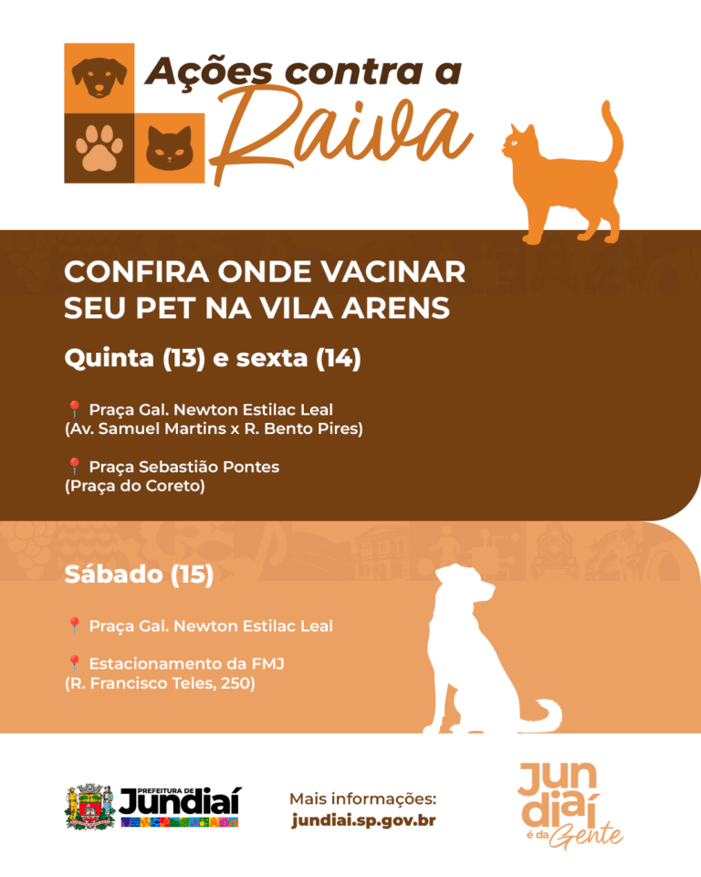 A Vigilância em Saúde Ambiental (VISAM), órgão da Secretaria Municipal de Promoção da Saúde de Jundiaí, inicia nesta quinta-feira (13) a vacinação antirrábica de cães e gatos da região da Vila Arens. As ações integram um amplo trabalho de bloqueio vacinal estruturado pela VISAM, após a confirmação de um caso de raiva em um felino na Vila Arens, no dia 4 de novembro.
