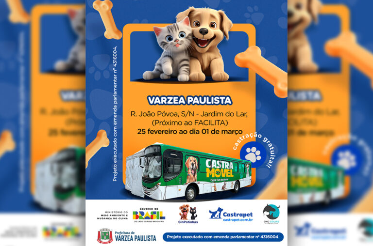 A Prefeitura de Várzea Paulista, por meio da Unidade de Meio Ambiente, promove um mutirão de castração gratuita de cães e gatos entre os dias 25 de fevereiro e 1º de março, na Praça CEU, localizada na Rua João Póvoa, s/nº, Jardim do Lar.