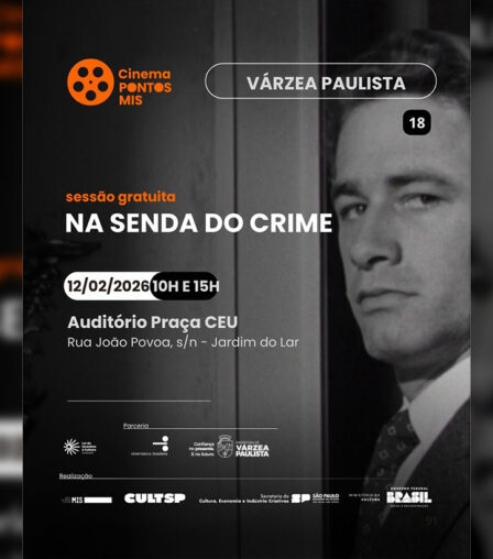 Na Senda do Crime’ será exibido dia 12 de fevereiro, às 10 e às 15 horas A Prefeitura de Várzea Paulista, realiza mais uma sessão gratuita de cinema em parceria com o programa Ponto MIS (Museu da Imagem e do Som). No próximo dia 12 de fevereiro, serão exibidas duas sessões gratuitas do filme ‘Na …